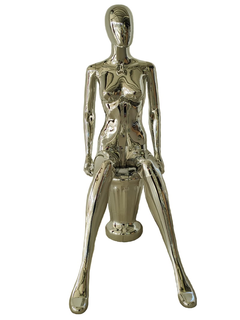 Manekin damski siedzący srebrny